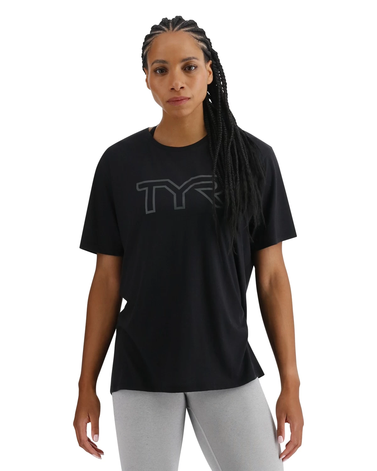 The TYR Women’s Ultrasoft Tri Blend Tech Tee – Big Logo takes you from the gym to the pavement seamlessly.